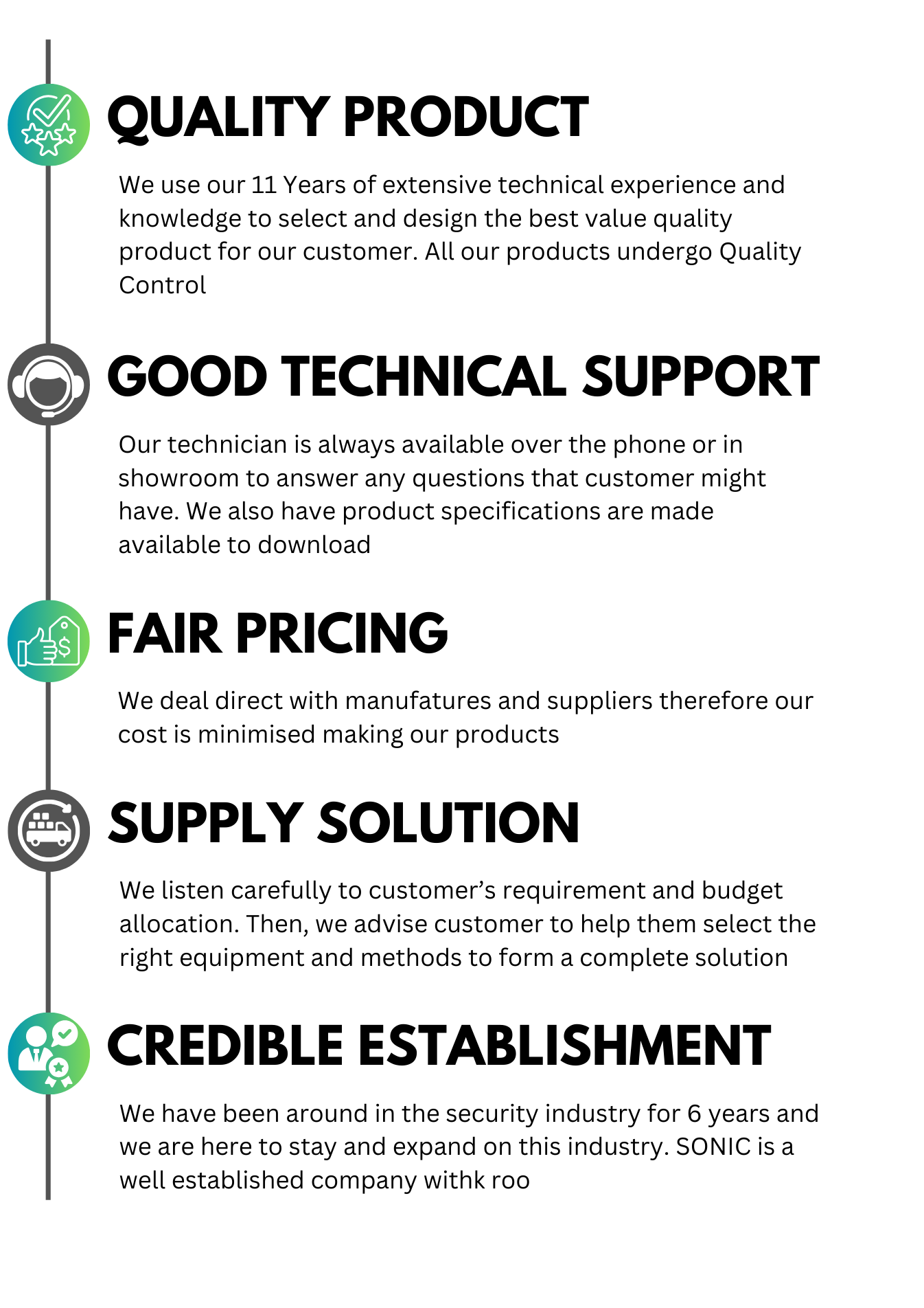 SONIC SYSTEM SOLUTION - Kelantan Security Supplier & Installer (CCTV, Alarm System, Fingerprint, Autogate & Electrical Work) 15 Google reviews iMRan shah2024-05-27Trustindex verifies that the original source of the review is Google. -technician yang baik ,tunjuk ajar diberikan kpda budak ii intern -Harga yg berpatutan -good services👍🏻👍🏻👍🏻 Shazmeer Affiq2024-05-25Trustindex verifies that the original source of the review is Google. Satisfied with their experience technician service. Recommend company !! Rais Akbarmubin2024-03-14Trustindex verifies that the original source of the review is Google. Service dia mmg terbaik, really recommend this company kalau ad nk pasang CCTV. Barang dia quality bagus. Hafiz Pokchek2024-03-14Trustindex verifies that the original source of the review is Google. Good services,interesting services and fast respond Adeeba2024-02-21Trustindex verifies that the original source of the review is Google. Servis terbaik!Meme jenis ore nak nego dan kekal lamo dale bisnes!Highly recommended 👍🏻👍🏻👍🏻 Syafiq Lemy2023-07-04Trustindex verifies that the original source of the review is Google. Alhamdulillah terbaik Afiqah Anwar2023-03-26Trustindex verifies that the original source of the review is Google. Excellent service from Sonic team harini. Clear instructions and unphased by the issue of getting my cctv cameras linked to my new router. Thank you aisyah2023-03-16Trustindex verifies that the original source of the review is Google. Servis mantap..saya pasang autogate lipat and saya puas hati dengan servis dan harga yang ditawarkan. Next saya plan nak pasang cctv harap harap bulan puasa ni ada promo. Atipah Shafie2023-03-16Trustindex verifies that the original source of the review is Google. saya buat autogate dan pasang cctv skali dgn alarm dgn company sonic ni. servis dan produk bagus2. boss pun baik sgt dan mudah utk berurusan. terima kasih ye