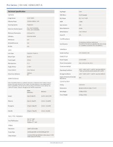 2MP CMOS; 1920(H)?1080(V), 2MP ; Progressive; 0.0002 Lux/F1.0, 0 Lux White Light on; Up to 40m(131.2 ft); Fixed lens;CVI/CVBS/AHD/TVI switchable ; BLC: BLC/HLC/WDR/HLC-Pro;WDR: 120 dB; White Balance: Auto/Area white balance; Noise Reduction: 3D NR; Video output choices of CVI/TVI/AHD/CVBS by one BNC port (DIP Switch); One channel built-in mic; 12V?30% DC; Casing: Metal throughout the whole casingen