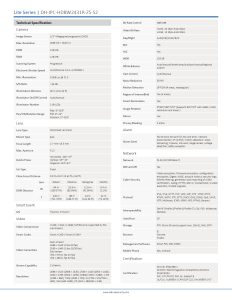 4MP, 1/3” CMOS image sensor, low illuminance, high image definition; Outputs 4MP (2560 × 1440)@25/30 fps, Max. supports 4MP (2688 × 1520)@20 fps; H.265 codec, high compression rate, ultra-low bit rate; Built-in IR LED, max IR distance: 40 m; ROI, SMART H.264+/H.265+, flexible coding, applicable to various bandwidth and storage environments; Rotation mode, WDR, 3D NR, HLC, BLC, digital watermarking, applicable to various monitoring scenes; Intelligent detection: Intrusion, tripwire; Abnormality detection: Motion detection, video tampering, no SD card, SD card full, SD card error, network disconnected, IP conflict, illegal ac- cess, voltage detection; Supports max. 256 GB Micro SD card; 12V DC/PoE power supply; IP67, IK10 protectionen