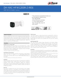 1/2.7″ CMOS; 1920(H)?1080(V), 2MP; Progressive; 0.02Lux/F1.8,30IRE, 0Lux IR on; Up to 60m (197feet); Motorized lens / Fixed iris;HD and SD output switchable; BLC Mode: BLC / HLC / DWDR;WDR:DWDR; White Balance & Smart IR: Auto / Manual; Noise Reduction: 2D; 1-channel BNC high definition video output / CVBS video output (Can switch); 12V DC ?30%; Casing: Aluminiumen
