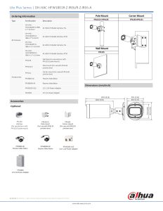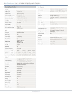 1/2.7 inch CMOS; 3840 (H)? 2160 (V), 4K; Progressive; Up to 60m(196.85ft); Motorized vari-focal Lens; CVI/CVBS/AHD/TVI switchable; BLC: BLC/HLC/WDR; WDR: 120dB/WDR; White Balance: Auto/manual; Noise Reduction: 2D&3D NR; One channel built-in mic (-A); Video output choices of CVI/TVI/AHD/CVBS by one BNC port; 12V ?30% DC; Casing: Metalen